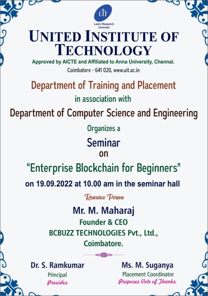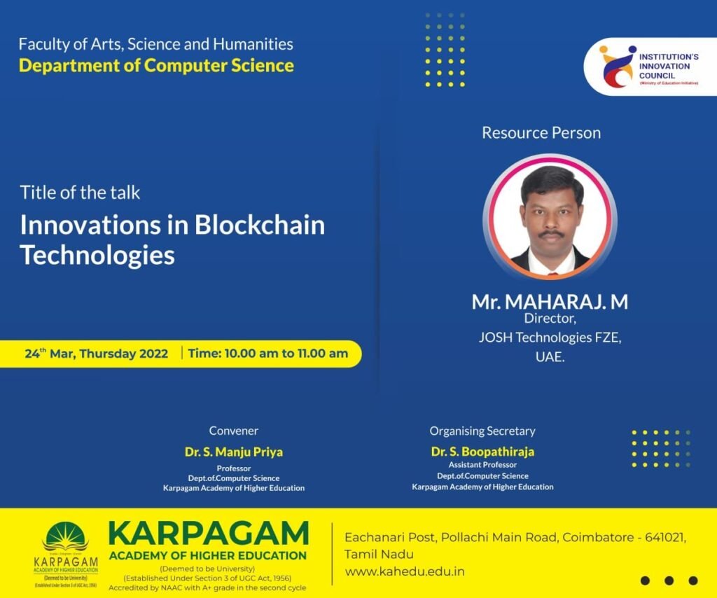 55. 1-day Seminar on Recent Innovations in Blockchain Technology – Karpagam Academy of Higher Education