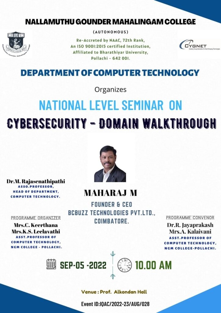 24. National Seminar – Cybersecurity: Domain walkthrough on 5th September 2022