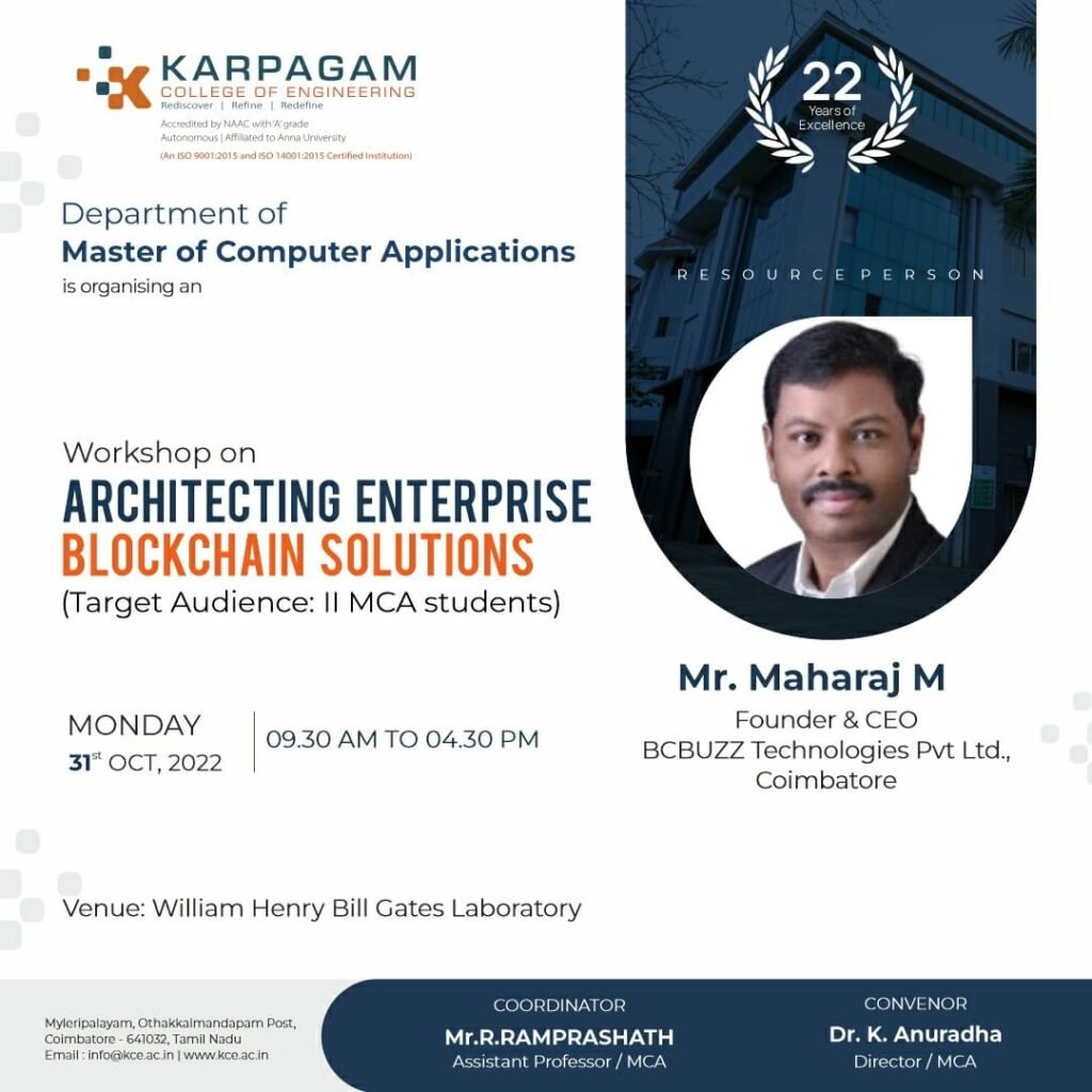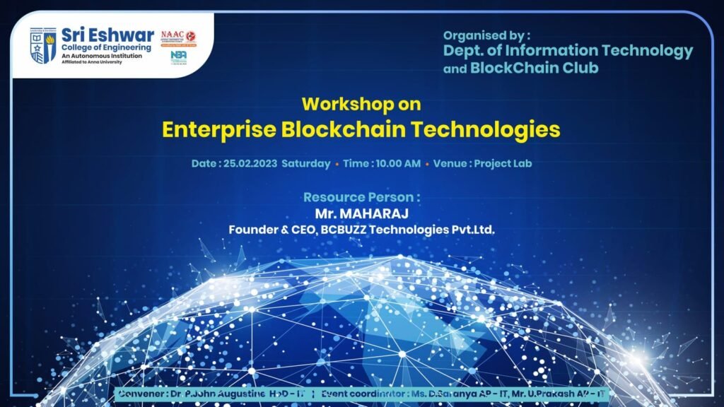 50. Workshop on Enterprise Blockchain Technologies – Department of Information Technology & Blockchain Club – Sri Eshwar College of Engineering
