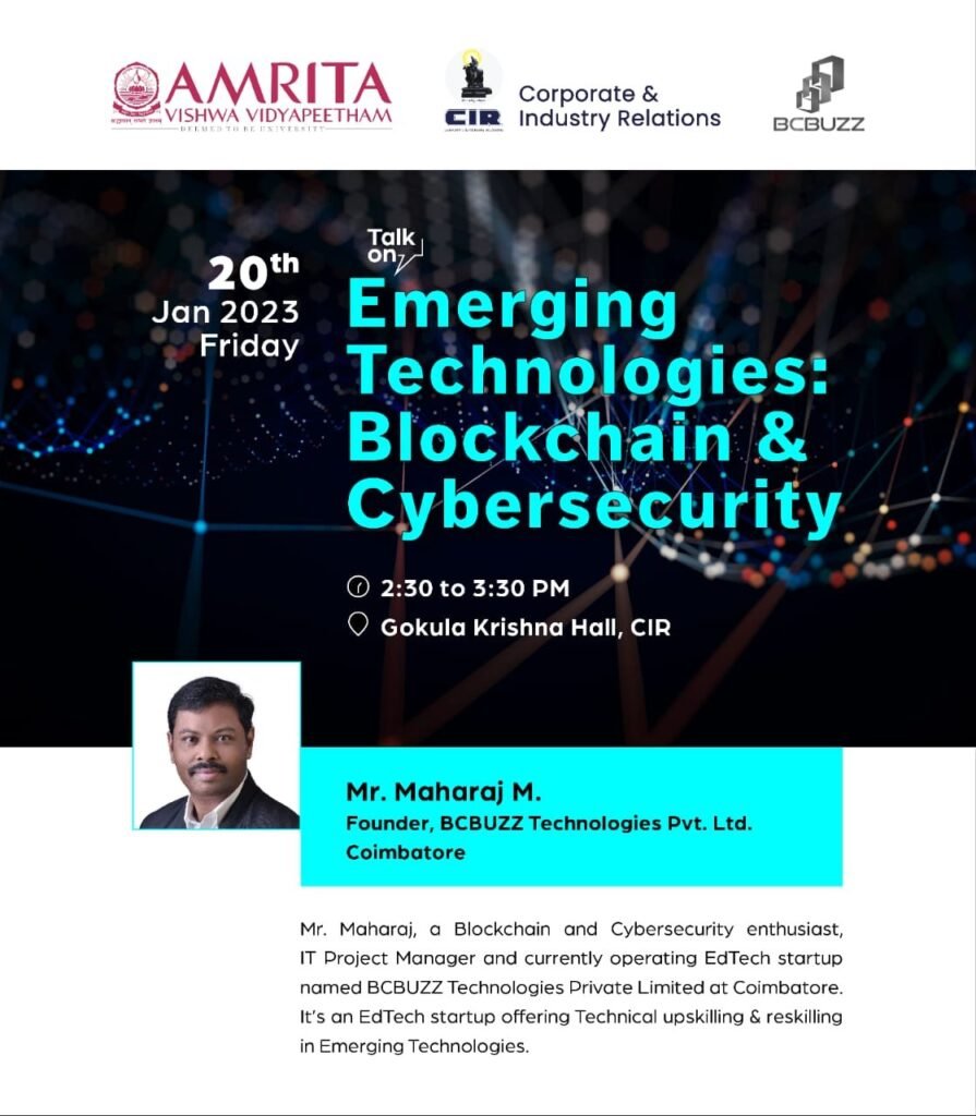 44. Tech Talk on Emerging Technologies: Blockchain & Cybersecurity on 20th Jan 2023