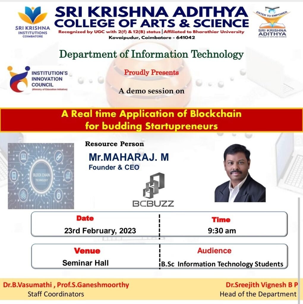 49. Tech talk on Blockchain Technologies – Department of Information Technology – Sri Krishna Adithya College of Arts and Science