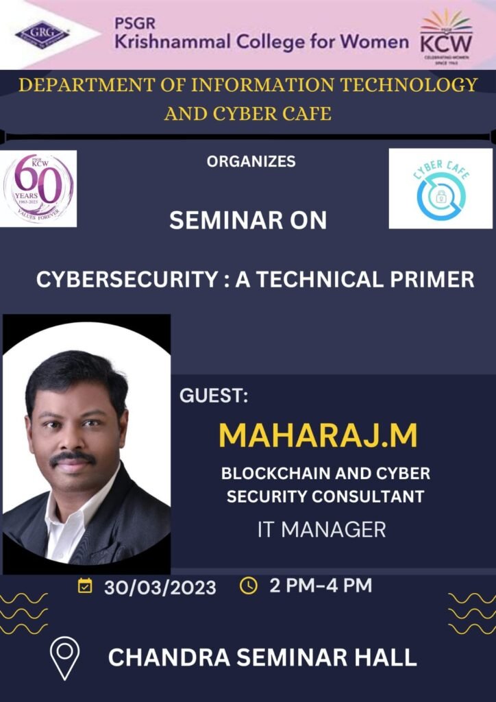 65. Seminar on Cybersecurity in PSGR Krishnammal College for Women on 30th Mar 2023