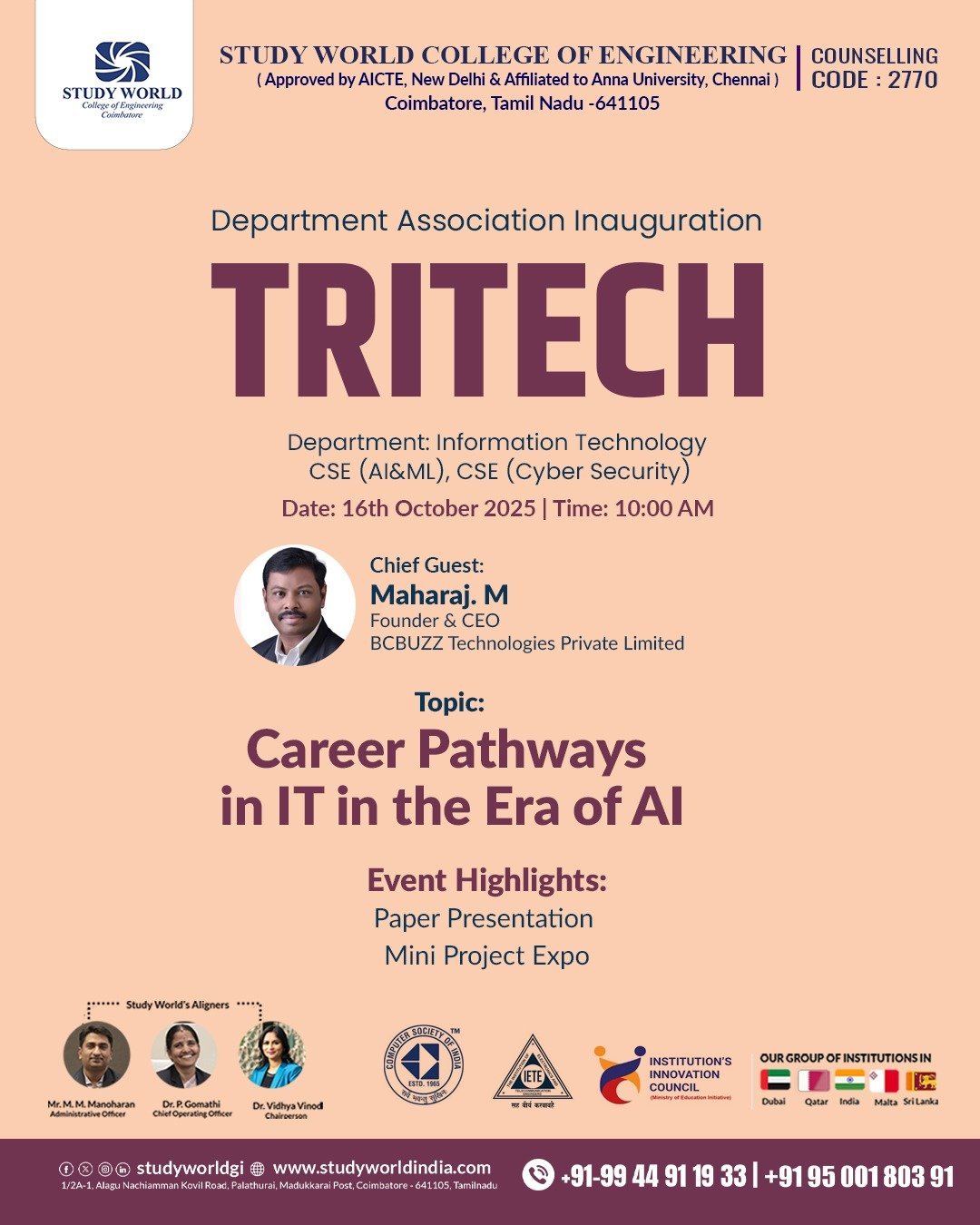 Inaugural address – Sri Sai Ranganathan Engineering College