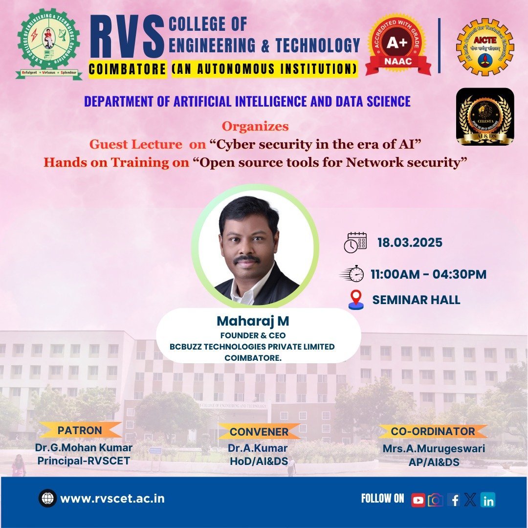 Cybersecurity in the era of AI (Forenoon) and Hands-on training ‘Open Source tools for Network Security’ (Afternoon) Guest, Guest Lecture
